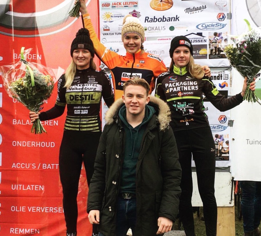 Na twee uurtjes fietsen, met de wind recht op kop ben ik in Boxtel aankomen voor mijn tweede en direct ook mijn laatste wedstrijd van het seizoen in de Parkhotel Valkenburg Destil kleding. De wedstrijd verliep beter als verwacht. Ik merk dat ik langzamerhand stappen aan het maken ben. De start verliep een beetje moeizaam waardoor ik meteen in de achtervolging zat. Na een rondje reed ik op de tweede plaats. De eerste plaats was voor olympisch kampioen Anna van der Breggen. En dit is zo de hele wedstrijd gebleven. Toch echt wel heel leuk zo’n veldritten rijden. Na de wedstrijd ben ik nog op de fiets naar huis gegaan waardoor ik er een mooie trainingsdag op had zitten. Ik word er ook gewoon echt blij van om af en toe een crossje te rijden. Het is goed voor het moraal voor het komende wegseizoen. Het geeft de nodige afwisseling.