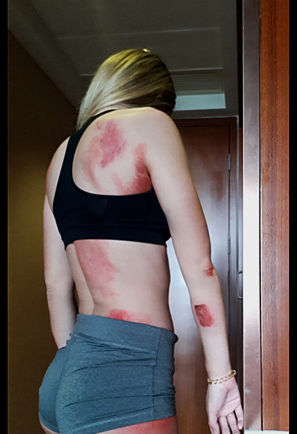 Donderdags 3 dagen later stond ik aan de start in China. Ik voelde direct al dat ik vrij sterk reed. Ik werd eindelijk beloond waarvoor ik getraind had. Alles ging perfect totdat de laatste 3 kilometer in ging… een valpartij zorgde ervoor dat zo goed als heel onze ploeg weg was. We zaten in perfecte positie maar door het respectloos rijden van sommige rensters vielen we…. in het begin viel de pijn mee ondanks de harde klap. Later op de dag toen ik moest gaan uitzoeken hoe ik moest gaan slapen wist ik dat het een lange nacht zou worden. Ik heb niet geslapen en de pijn was bijna ondraaglijk. Ik was zo moe maar slapen zat er niet in. In de ochtend hadden we besloten dat het onverantwoord was om te starten. Gelukkig blijft het bij vel wat er af is. Het kan allemaal veel erger. Het positieve is dat ik me sterk voelde en dat ga ik vasthouden voor als ik straks thuis kom en weer aan het trainen ga. Ik wil graag iedereen bedanken voor de goede zorg, het team, Herman, de organisatie hier en alle lieve mensen hier om me heen. Het is één grote familie die allemaal voor elkaar zorgen, dat is het geluk bij het ongeluk. Ookal ben je ver van huis, de juiste mensen staan je toch altijd bij!