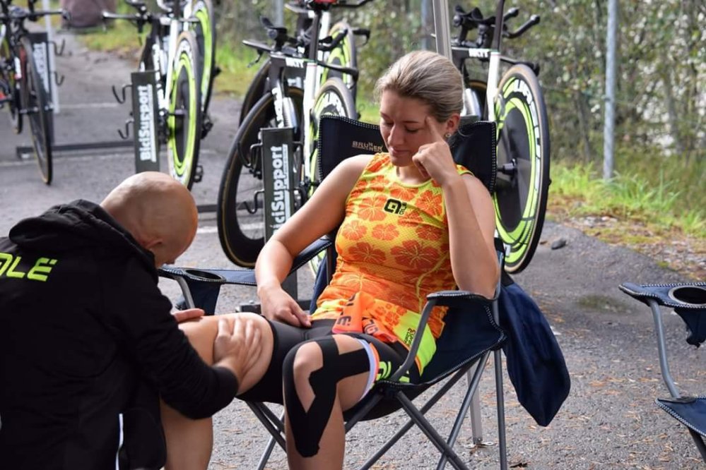 Al sinds Zweden heb ik een probleem met mijn kuit. Telkens als ik op de tijdritfiets had gezeten, krijg ik er meer last van. In het begin herstelde ik er redelijk snel van, maar naarmate de wedstrijden volgden herstelde de kuit steeds minder snel. In Zweden en Noorwegen kon ik het tijdens de wedstrijd nog volhouden maar na de TTT had ik er enorm last van. Ook na de proloog in de Holland ladies tour voelde het niet goed. Uiteindelijk kwam ik er elke keer weer doorheen maar na de TTT in Madrid gaf mijn kuit aan dat het genoeg was geweest. Ik kon het precies de tijdrit volhouden maar tijdens het losrijden voelde het echt niet goed. De dag voor het WK kreeg ik last van mijn linker knie. Dit kwam doordat ik met mijn linker been het gedeelte probeerde te corrigeren dat ik niet kon leveren met mijn rechter been. Uiteindelijk leverde dit veel steken op in mijn linker knie. Toen dit gebeurde baalde ik enorm. De dag van de tijdrit tijdens het inrijden kon ik geen vermogens leveren. Zowel mijn linkerbeen als rechterbeen voelden niet goed. Toen we van start gingen probeerde ik het licht te corrigeren met mijn linker been maar omdat de start omhoog liep ging dit meteen fout. ik kreeg last van mijn linker knie waardoor ik direct over moest op beide benen met als gevolg heftige kramp in mijn kuit. Ik heb hier zolang mogelijk mee doorgereden maar toen ik al na 15 minuten totaal niks meer kon bijdragen en de kramp echt door zette ben ik moeten stoppen. Ik heb eerst geprobeerd rustig door te fietsen maar zelfs dat ging niet meer.