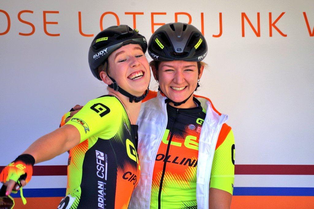 Om mijn verhaal te beginnen moet ik zeggen dat ik het onwijs jammer vond om het Nederlands Kampioenschap niet samen met mijn zusje Sylvie te kunnen starten. Het zou ons eerste kampioenschap in dezelfde categorie zijn, maar helaas kon ze niet van start gaan vanwege de val in Borssele. Ondanks dit was het toch een onwijs mooie dag. 35 Graden, 5 rondes van 25,3 kilometer en een aanvallend peloton. Ik ben blij met het verloop van mijn wedstrijd. Ik fietste constant alert voorin en zat dan ook mee toen ze de derde keer versnelden op de ‘klim’. Al snel werd duidelijk dat er niet doorgereden werd. Toen onze groep teruggepakt werd ging er meteen nog een groep meiden in de aanval. Dit bleek de ontsnapping van de dag te zijn. Soms moet je keuzes maken en vandaag koos ik voor de verkeerde groep. Desondanks ben ik gewoon tevreden over het NK.