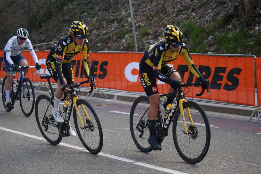 Het doel voor deze wedstrijd was; Alles eraan doen om te zorgen dat Marianne de koers wint. Elke wedstrijd is anders, maar het doel van elke wedstrijd is hetzelfde. Namelijk het hoogst mogelijke resultaat voor het team eruit halen. Oftewel hoe Jumbo – Visma het zegt; Samen winnen! In sommige wedstrijden krijg je een vrije rol, maar in andere wedstrijden is het grotere doel belangrijker. Gisteren was zo’n dag. Marianne had haar zinnen gezet op het winnen van de Amstel Gold Race. Wat voor de rest van het team betekende dat ze er alles aan gingen doen om dit doel te realiseren. Mijn rol daarin was om Marianne te beschermen. Op een cruciaal moment in de wedstrijd zaten wij te ver van achter waardoor ik alles heb gegeven om ons terug vooraan in de wedstrijd te brengen. Dit kostte dusdanig veel energie, waardoor ik niet op tijd kon herstellen voor de volgende klim. Mijn eigen kans om voorin de koers mee te rijden was weg, maar Marianne bespaarde zo de nodige energie wat het doel was.